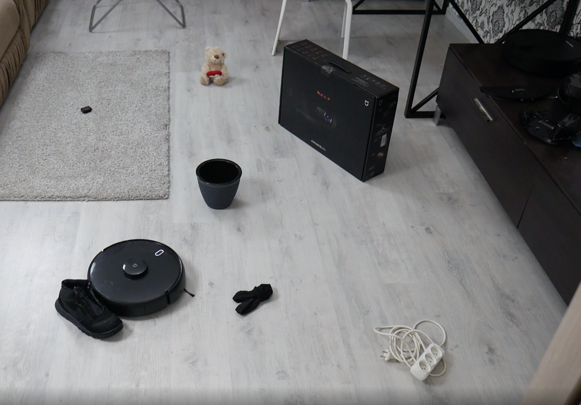 Дополнительно я провел тест с отключенным распознаванием предметов. Оказалось, что робот неплохо ориентируется и в таком режиме. Он успешно обошел все препятствия, кроме носков. В общем, если возникнут проблемы с коврами, отключать 3Д-датчик можно будет смело. Если выключить свет, робот конечно же не будет распознавать предметы.