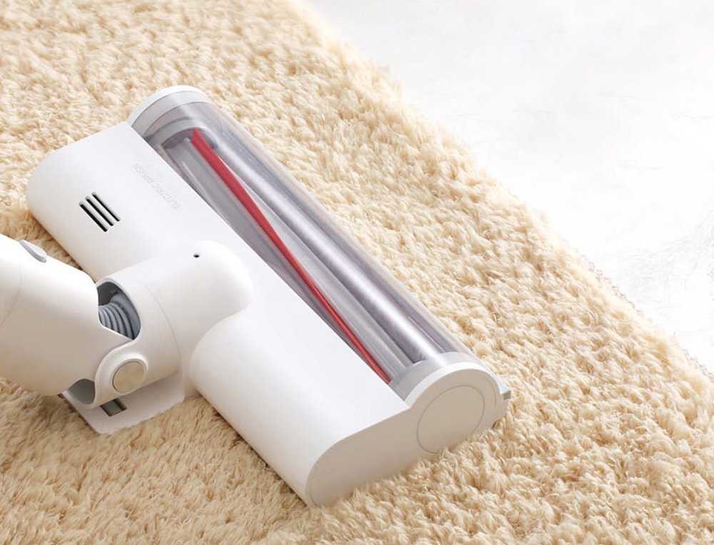 - Щетка-валик. Ее головка изготавливается из нейлона, покрытого мягким флисом. Это оптимальный вариант для устранения загрязнений с деревянных полов, ламината, керамической плитки и линолеума. Приятный бонус – наличие подсветки, которая включается автоматически, когда снижается уровень освещенности. Если у вас есть домашние животные, то вы по достоинству оцените сменный блок Roidmi F8 с щетинками из углеродного волокна – они способны извлечь шерсть даже из ковров с высоким ворсом.