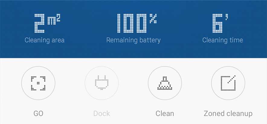 Для получения дополнительной информации используется бесплатная утилита Xiaomi Mi Home (доступна для Android и IOS). Программа позволяет определить уровень заряда батареи, свободный объем резервуара для пыли и остаточный ресурс фильтрующего элемента. Дополнительные разделы предназначены для подсчета пройденного при уборке расстояния, имеется счетчик затраченных на уборку калорий, возможен просмотр информации о площади убранного за 1 цикл помещения.