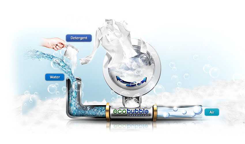 Функцией «EcoBubble» называется предварительное смешивание стирального порошка с водой и воздухом. Приготовление пеновоздушной смеси происходит в специальном устройстве под названием проточный нагнетатель.