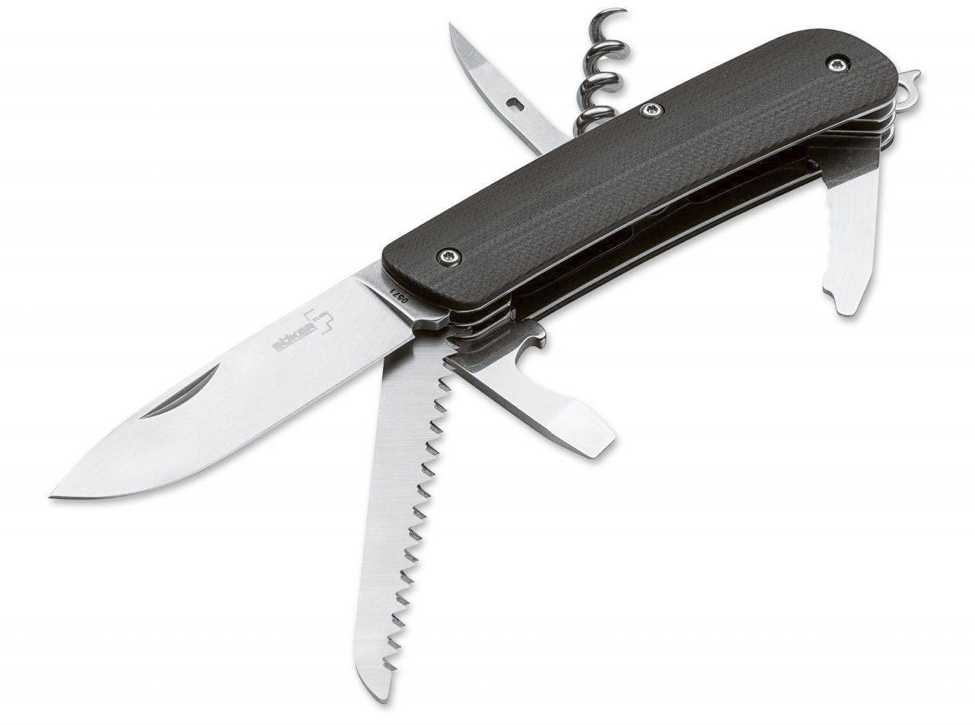 При выборе мультитула, обратите внимание на качество стали лезвия, расположении ножа и наличие фиксации лезвия ножа в открытом состоянии. Многие мультитулы кроме обычного ножа оснащены ножом с серейторным лезвием, такой нож удобен для реза волокнистых материалов.
