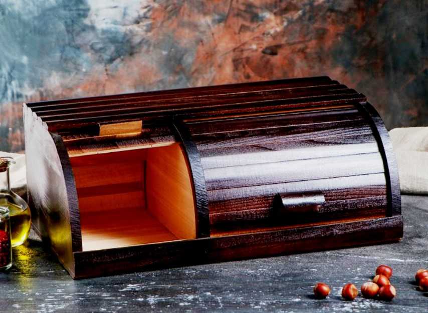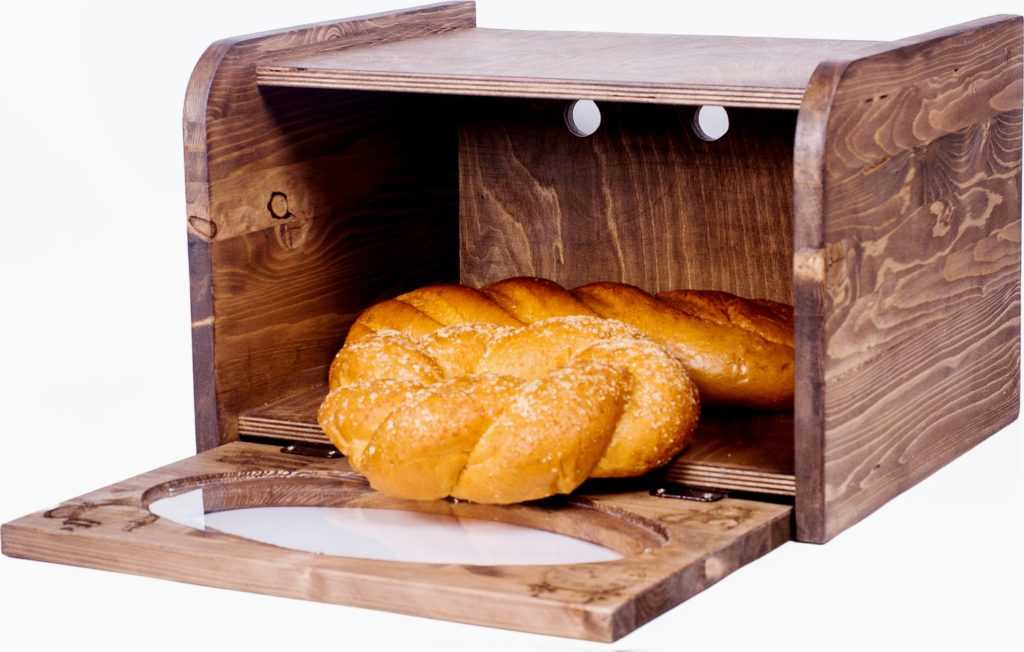 Подобное изделие позволит сохранить хлебобулочные изделия свежими, ароматными и хрустящими на протяжении многих дней. В качестве основного материала производитель использовал дерево, а именно — гевеи. Для большего удобства в эксплуатации модель оснащена комфортной дверцей с небольшой ручкой. Следует отметить, что деревянный аксессуар будет прекрасно смотреться на любой кухне. Также по мнению специалистов, лучше всего хранятся булочки именно в деревянных емкостях. Дерево впитает в себя остатки влаги и не позволит хлебу зачерстветь в течение нескольких дней. От плесени хлебница не спасет, поэтому необходимо быть внимательными.