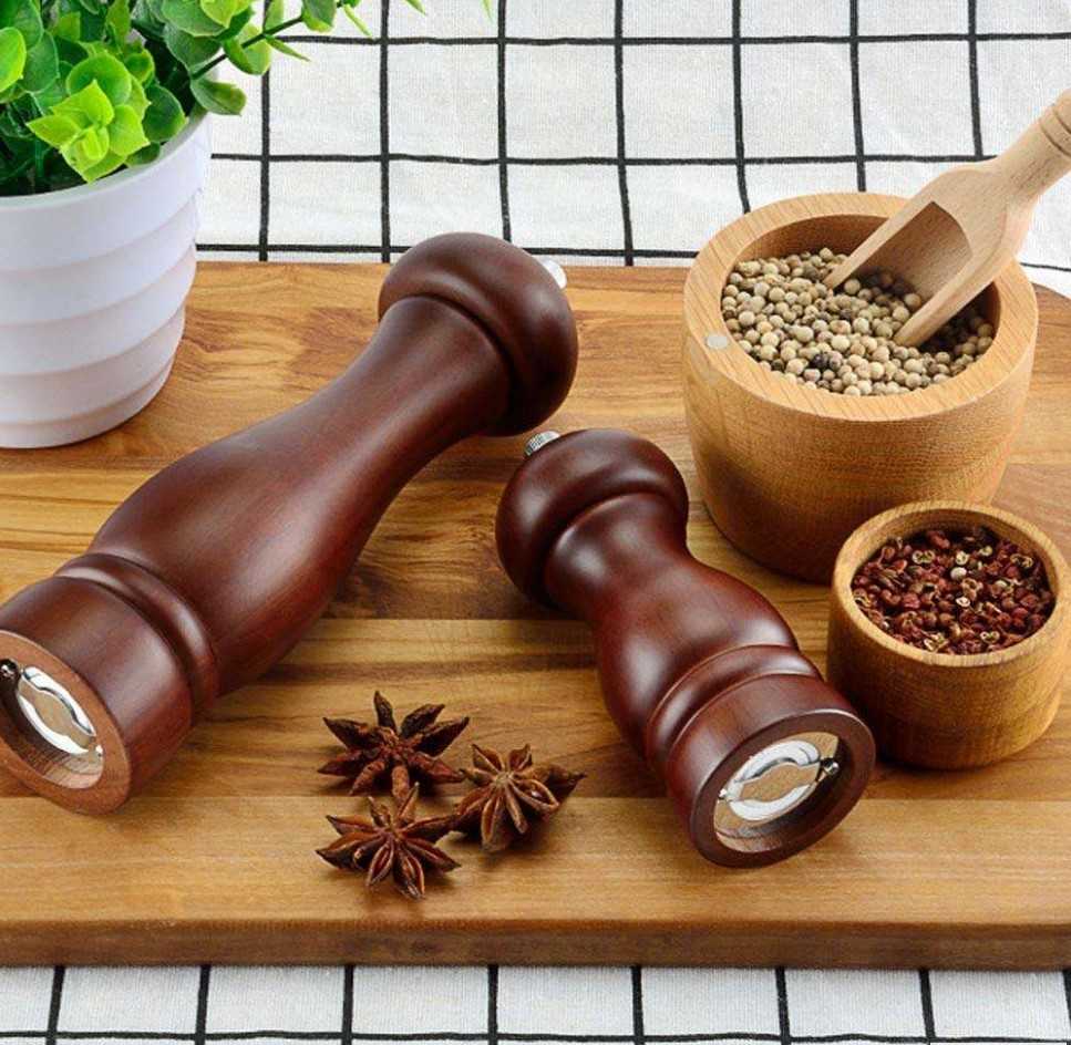 Дерево. Наиболее дешевый и простой материал. Такие жернова не подойдут для крупной соли и справятся не со всеми орехами. Для трав, перца и ягод они вполне подходят. Более того, деревянные круги придают специям дополнительный аромат, особенно если они выполнены из хвойных пород. Однако деревянные круги также хорошо и сами впитывают запахи, которые будут подмешиваться при следующем помоле других продуктов. Изделия выглядят очень колоритно, некоторые напоминают кофемолку для специй и орехов. Такие модели обычно имеют аутентичный дизайн, стилизованный под антиквариат. Деревянные мельницы для специй будут прекрасным подарком.