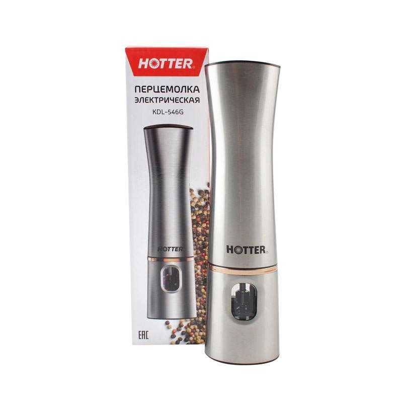 Измельчить перец или крупную соль легко и быстро можно с помощью поворотной наклонной мельницы. Достаточно просто наклонить ее под углом 45 градусов – и вы получите специи крупного или мелкого помола (режим устанавливается поворачиванием кнопки). Расположение измельчающих жерновов в верхней части корпуса избавляет от пыли и крошек на столе в процессе использования и после него. Мельничка для специй электрическая от Hotter очень удобна в использовании.