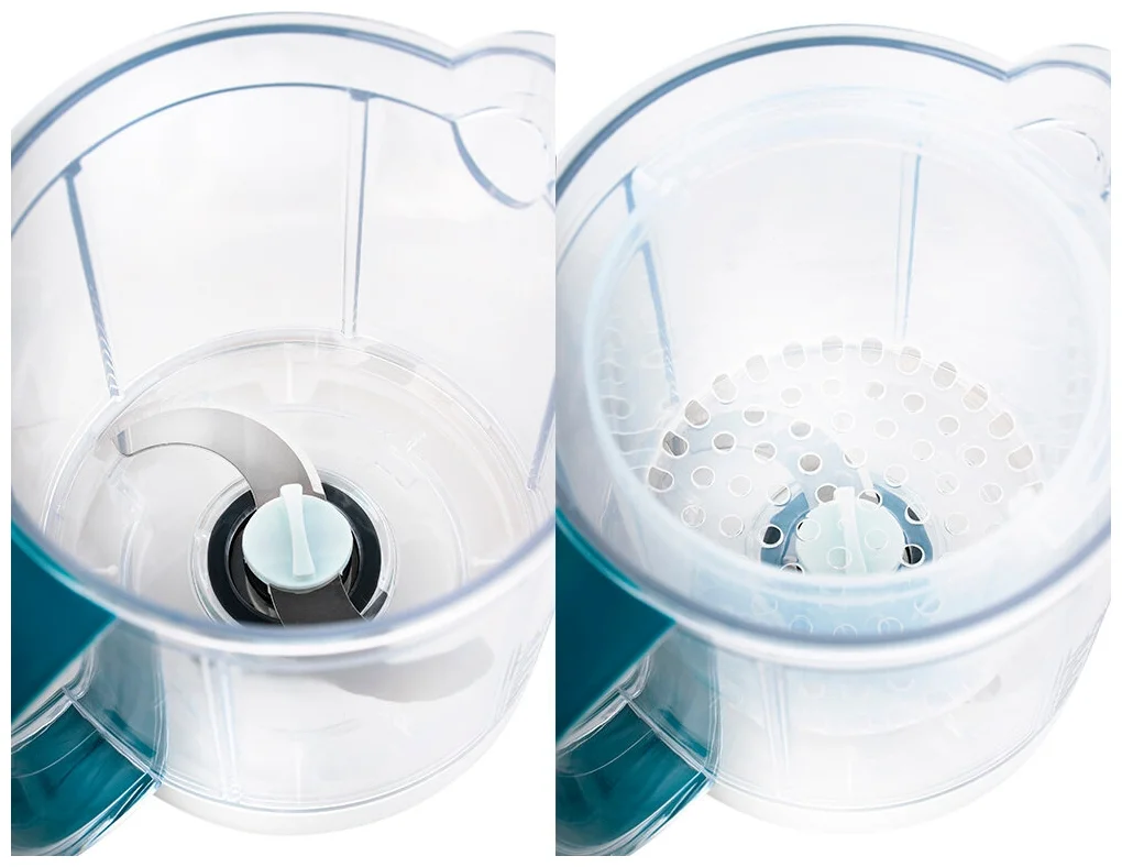 - Когда целью является исключительно питание малыша, можно остановить выбор на мини-блендере. У него невысокая стоимость, он не требует много пространства на кухне и легко выполнит возложенную на него задачу.