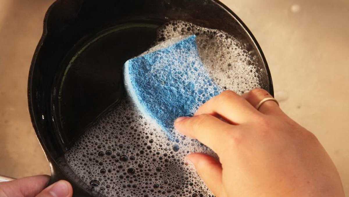 - Мыть такую посуду стоит без современных спецсредств, ведь они только разрушают естественное антипригарное покрытие, а это в будущем приводит к пригоранию пищи.