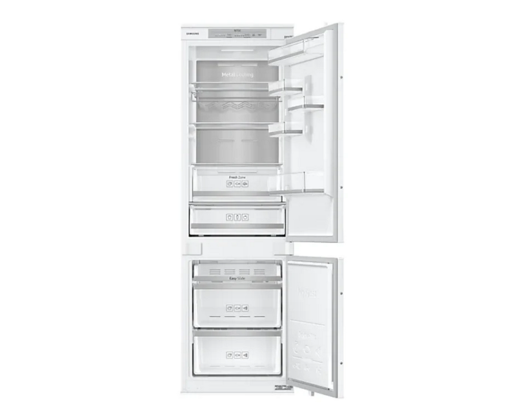 Холодильник довольно производительный — замораживание 9 кг продуктов в сутки. В модели используется технология многопоточного охлаждения All Around Cooling, которая позволяет быстро и эффективно охладить содержимое до заданной температуры. Комплектность холодильной камеры: 3 полки из закаленного стекла и 1 из металла для тяжелой посуды, ящики для овощей и фруктов, навесные контейнеры на дверце. В морозильном отделении находятся два полноразмерных ящика и выдвижная полка Easy Slide.