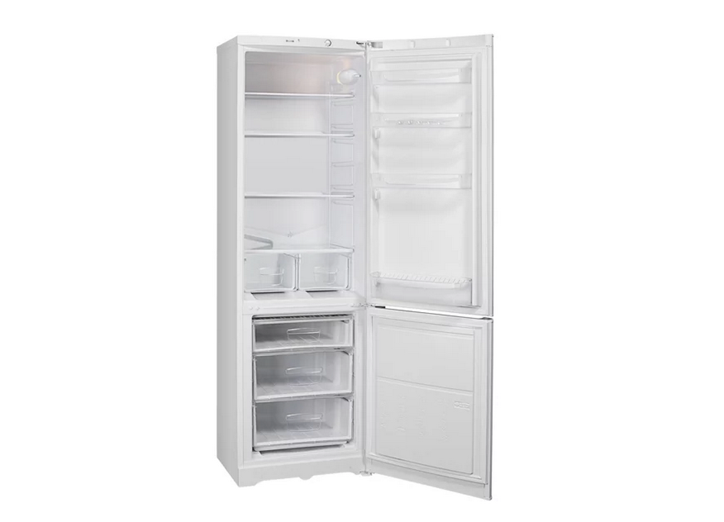 Для многих будет неожиданностью встретить в рейтинге бюджетных холодильников представителя известной фирмы Indesit. Стильное и относительно компактное устройство стоит чуть менее 15000 рублей, и свои деньги оно сполна оправдывает. Начать стоит даже с того, что выглядит прибор очень стильно, поэтому в интерьер небольшой современной кухни он впишется просто идеально. Более того, это достаточно вместительный двухкамерный холодильник: общий объем достигает порядка 339 литров.