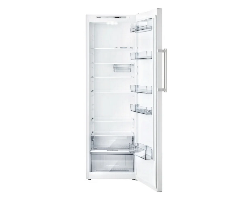 Холодильник с одним компрессором, тихий — максимум 39 Дб. В холодильной камере полки из закаленного стекла. Дверцы можно перенавесить. Вес пустого холодильника около 65 кг. Габариты 54х177х55 см.