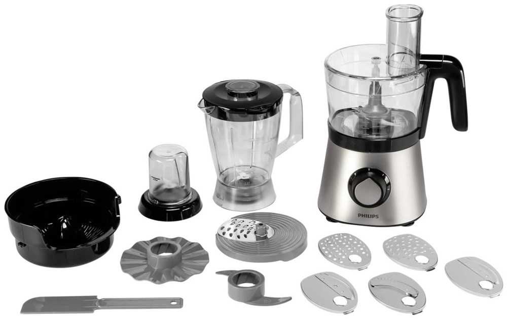 Количество различных насадок и дополнительных предметов комплектации напрямую влияет на функциональность кухонного комбайна.