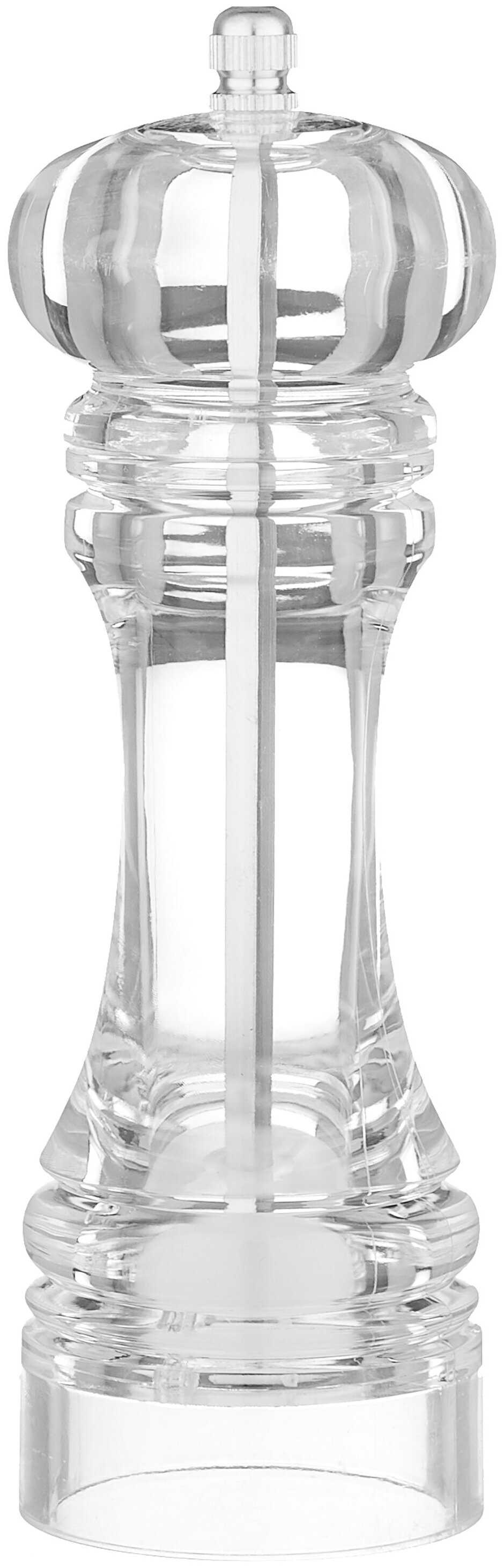 Акриловый или АБС-пластик имеет яркий цвет. Такой материал не впитывает ароматы и не пропускает влагу. Последнее является негативным моментом, так как влажные специи, попавшие в такую емкость, могут испортиться. Акрил безвреден, его можно мыть водой или протирать влажной губкой. Мельницу из такого материала нежелательно оставлять на солнце; акрил может гореть.
