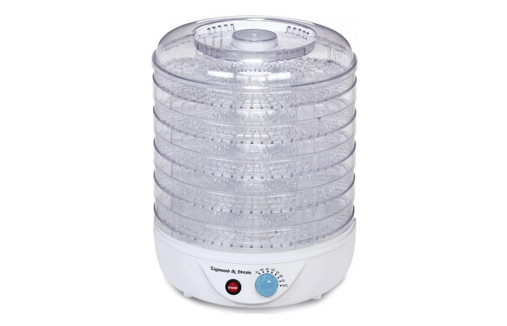 Еще одна сушилка конвективного типа с мощностным потенциалом в 600 Вт. Она имеет цилиндрическую форму и вертикальную подачу воздуха. Пригодна для сушки мяса, рыбы, грибов, ягод и разнотравья. Рабочий объем дегидратора — 30 л, в наличии шесть поддонов диаметром 39 см.