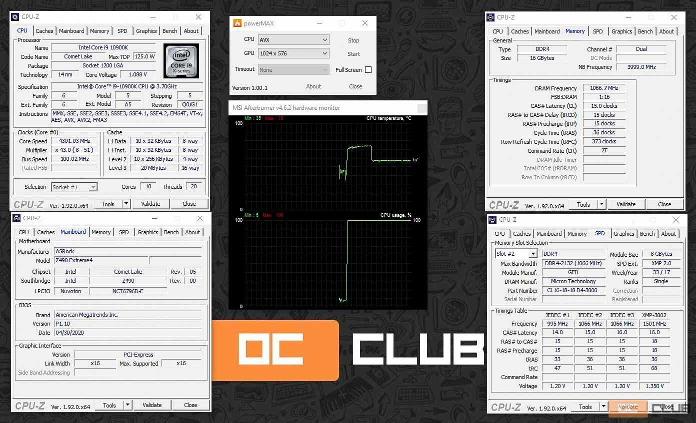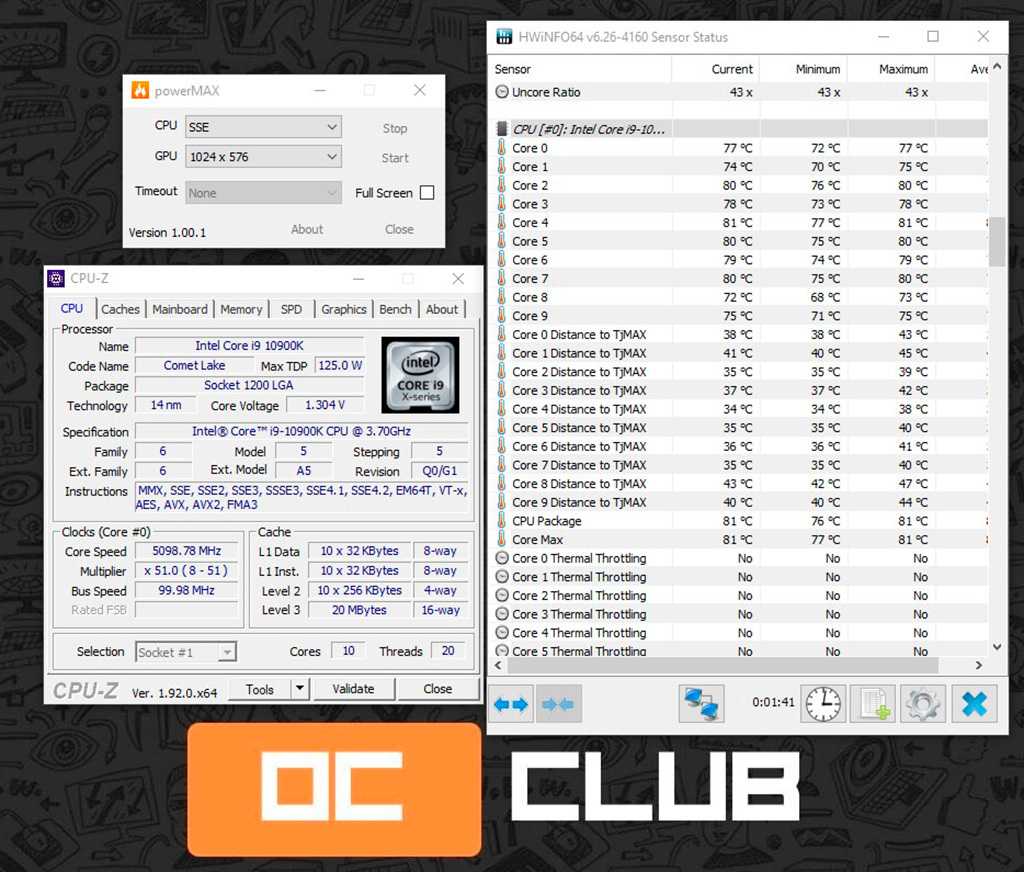 О разгоне Intel Core i9-10900K на материнской плате ASRock Z490 Extreme4 подробно было рассказано в обзоре Core i9-10900K. Вкратце напомню, что удалось выжать стабильные 5,1 ГГц при напряжении 1,35 В без AVX-инструкций, и 5 ГГц при 1,3 В с оными. В целом отмечу, что препятствующим фактором была температура и экземпляр CPU, а не материнская плата.