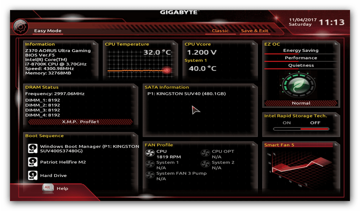 - Приложение GIGABYTE EasyTune – это простая в освоении фирменная утилита, которая позволяет выполнить тонкую настройку параметров системы, в частности отрегулировать напряжение питания и частоту ЦП и модулей ОЗУ в среде Windows. Благодаря функции Smart Quick Boost одним щелчком кнопки мыши можно инициировать процедуру оверклокинга в автоматическом режиме, добиваясь прироста производительности системы, когда это необходимо.