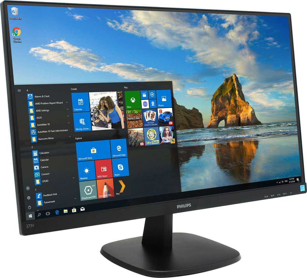 Трехсторонний безрамочный дизайн — вот что отличает монитор PHILIPS 273V7QJAB (00/01) от многих подобных устройств. Разрешение дисплея 1920х1080 дает возможность пользователю наслаждаться качеством изображения, этому же способствует соотношение сторон 16:9, углы обзора по 178 градусов, высокая плотность пикселей. Чтобы подстроить модель под себя, пользователь может наклонить корпус под удобным для него углом. Представленный на данной странице монитор PHILIPS 273V7QJAB (00/01) обладает всеми нужными разъемами, чтобы подключать разные источники питания и выход для наушников. Также производитель снабдил этот монитор встроенной акустической системой и внутренним блоком питания.