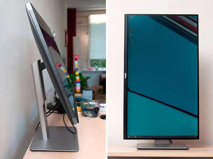 Есть возможность перевернуть экран в портретный режим (Pivot). Как и в случае с некоторыми другими моделями Dell, дисплей может вращаться в двух направлениях. Вероятно, именно из-за этого центровка корпуса выполнена плохо — после изменения положения монитор надо постоянно выравнивать строго по горизонту.