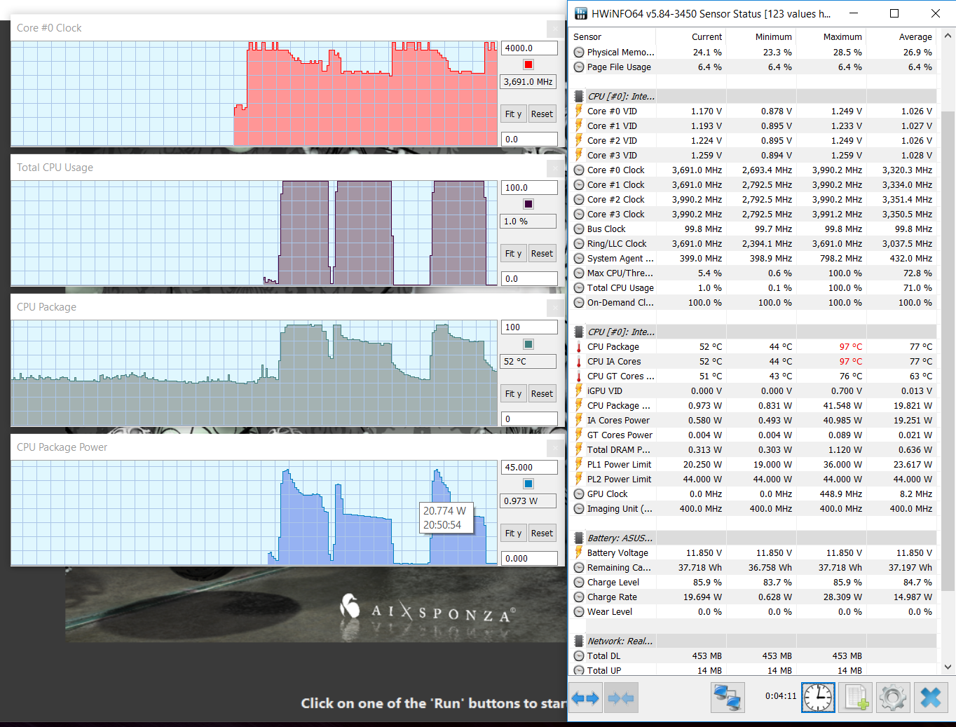 Asus’s implementation allows the CPU to draw up to 40W of power in Cinebench for a few seconds, settling down at around 20W for concurrent loads, which is still higher than the standard 15W TDP of most i7-8550U implementations. As a result, this laptop scores high in CPU benchmarks, as you can see below.