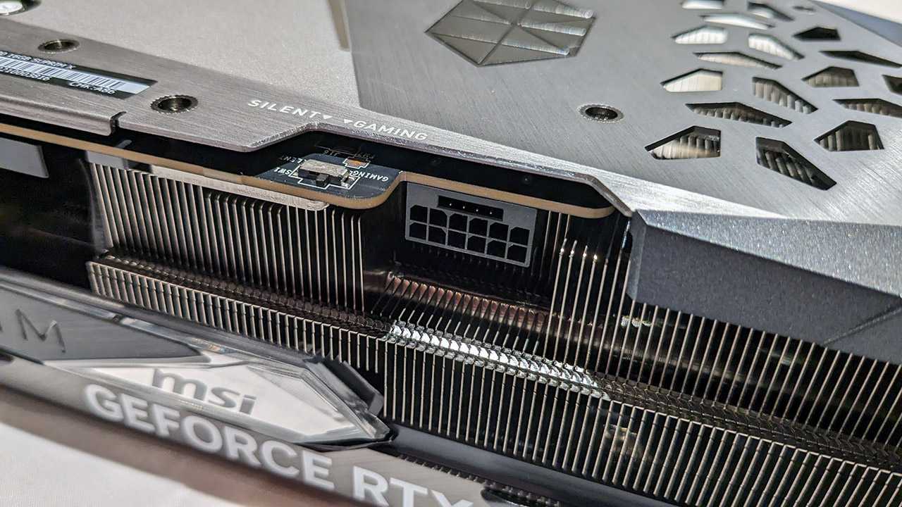 Как и большинство 4080, он оснащен тремя портами DisplayPort 1.4a и одним портом HDMI 2.1. Карты Ады Лавлейс не поддерживают DisplayPort 2.0/2.1. Вы также получаете двойной BIOS с бесшумными и игровыми опциями, хотя нет необходимости использовать бесшумную опцию, когда настройка по умолчанию в любом случае практически бесшумна. Один разъем 12VHPWR обеспечивает питание, а MSI комплектует адаптер питания 3×8-pin.