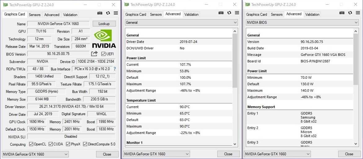 Видеокарта Palit GeForce GTX 1660 Dual OC в нашу редакцию поступила с версией BIOS 90.16.25.00.75.