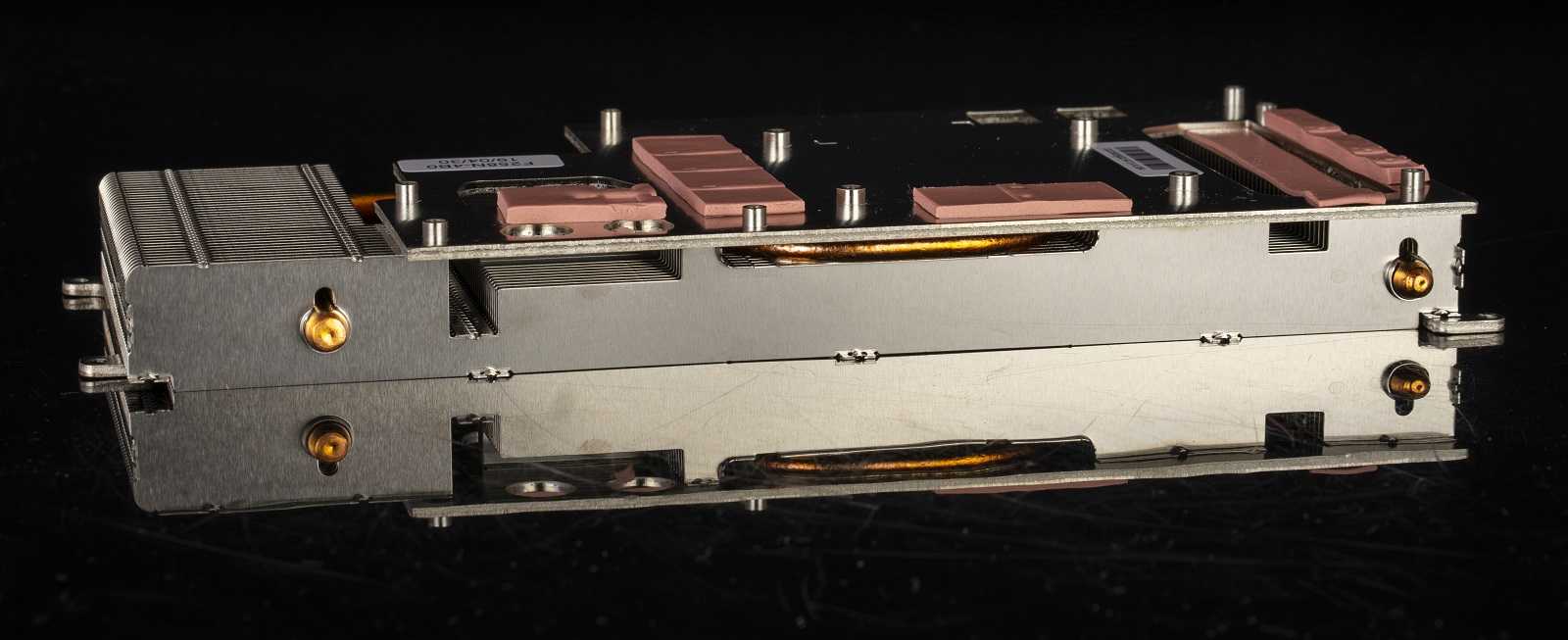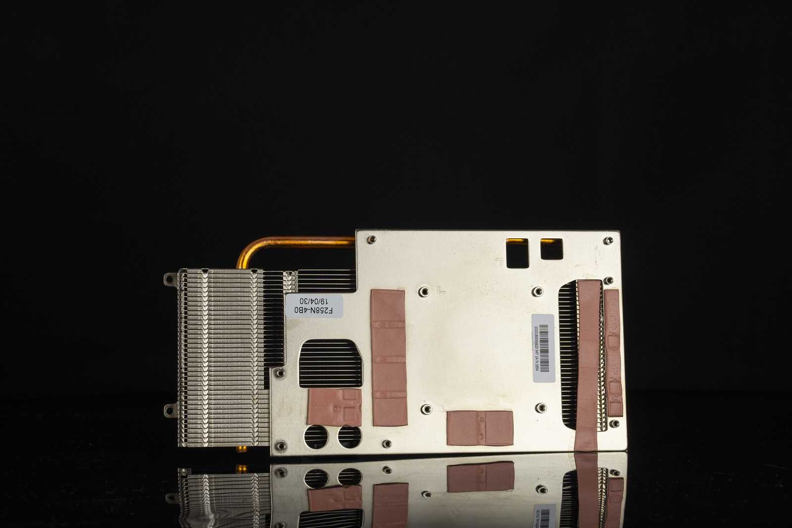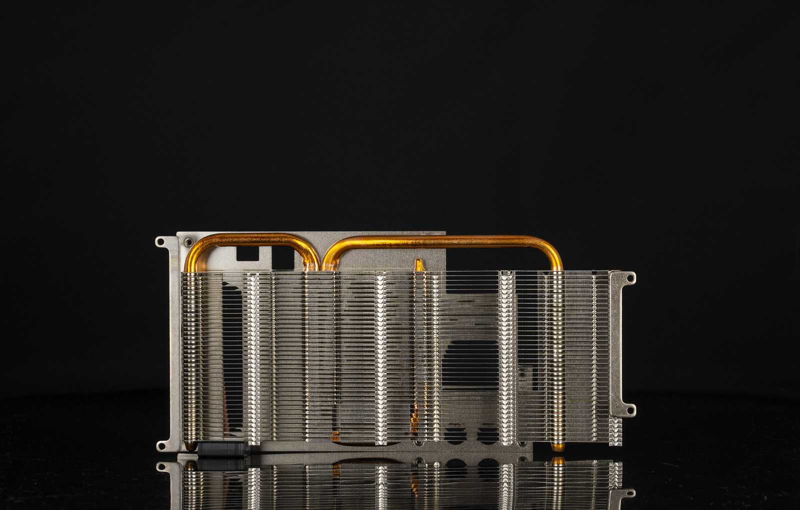Длина радиатора составляет 195 мм, ширина — 74 мм. Ребра ориентированы для выброса нагретого воздуха за пределы видеокарты. На каждом дюйме находится 14 ребер (плотность 14 FPI).