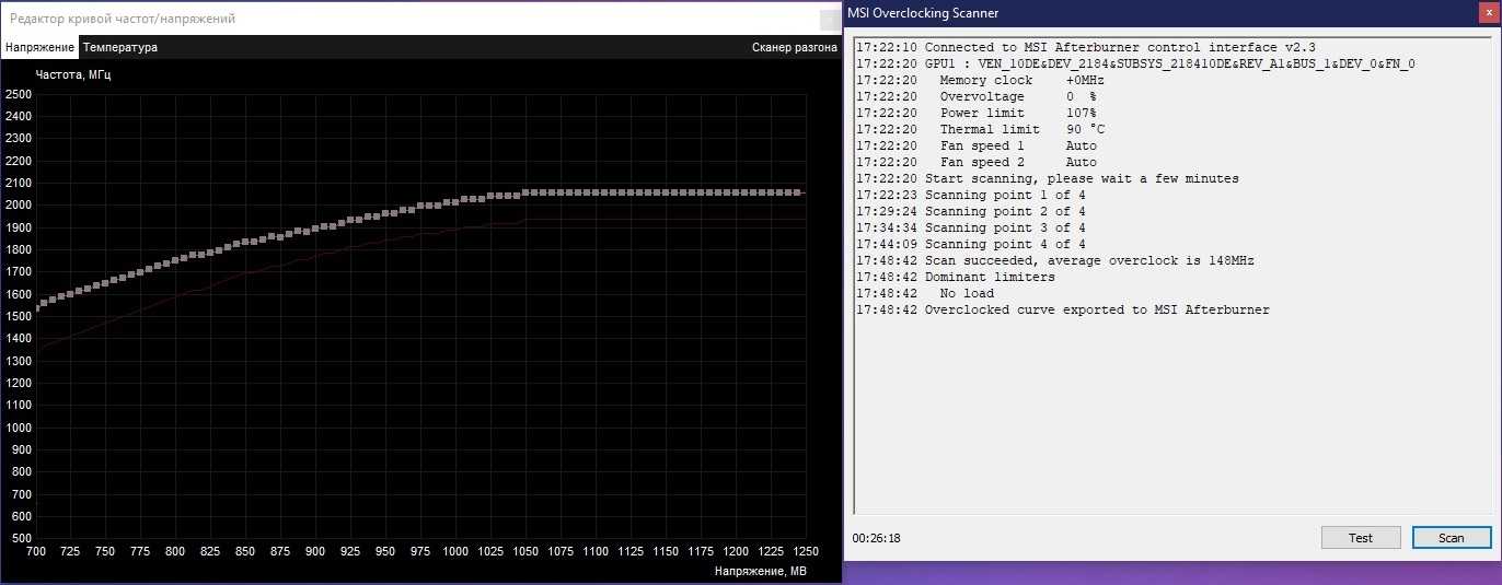 Технология автоматического разгона OC Scanner от NVIDIA позволяет в автоматическом режиме найти стабильный разгон для вашей видеокарты с архитектурой Turing или Pascal.