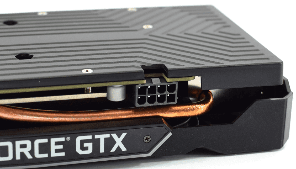 В задней части Palit GeForce GTX 1660 Super расположено 8-контактное гнездо дополнительного питания. Его одного достаточно для питания видеокарты, даже без дополнительных 75 Вт, которые обеспечивает слот PCI Express.