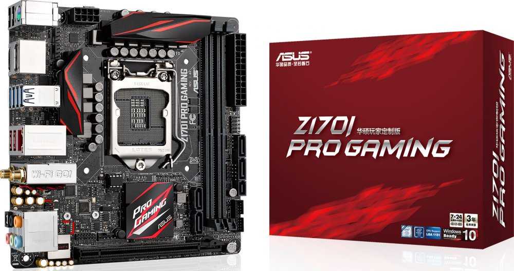 Из всех производителей меньше всего негативных отзывов касательно железа и прошивок среди моделей последних лет у ASUS. Именно этот бренд мы и берем. В версии Mini-ITX есть две модели подешевле и подороже. Мы выбрали ту, что дешевле — ASUS Z170I PRO GAMING за 8500 рублей. Ее же «коллега» под названием ASUS MAXIMUS VIII IMPACT стоит на целых 3000 рублей дороже, а в лучшую сторону отличается лишь кнопками сброса BIOS, да лучшей приспособленностью к использованию жидкого азота за счет специальных перемычек.
