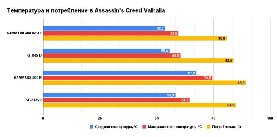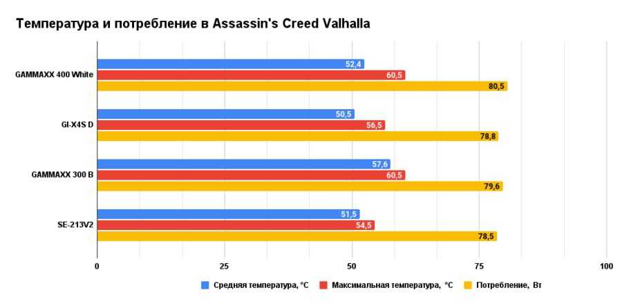 В тесте производительности игры Assassin’s Creed Valhalla все системы охлаждения справились с отводом тепла, а лучшими показателями может похвастаться DEEPCOOL GAMMAXX 400 White.