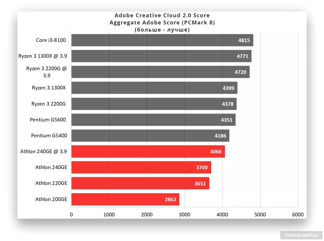 Процессоры Pentium имеют преимущество в большинстве приложений, но процессоры Athlon также показывают неплохую производительность. Pentium не ускоряют инструкции AVX, которые являются основой многих приложений рендеринга. Intel лидирует в приложениях с небольшим числом потоков, вроде браузеров.