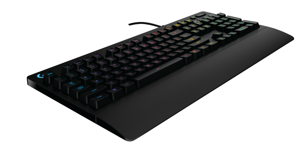 Представляем Вашему вниманию игровую клавиатуру компании Logitech. Это классическая, мембранная черная клавиатура удобна, практична и современна. Она проводная и подключается к ПК с помощью USB, что позволяет не переживать, что в самый ответственный момент у Вас сядут батарейки, а запасных не будет рядом. Раскладка стандартная, что позволяет быстрее привыкнуть к ней. Также есть подсветка клавиш, но она ограничена несколькими зонами и регулируется только с ПО. К минусам можно отнести то, что клавиатура довольно шумная, но звук нажатия клавиш приятный. Цена средняя, что можно отнести к плюсам. Вот краткая информация по данному девайсу. Подходит ли она Вам или нет, решать только Вам.