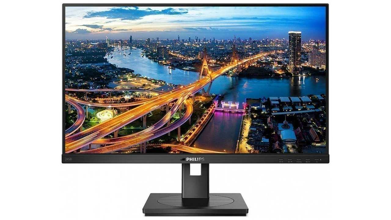 Наш список открывает модель Philips 245B1. Это отличный монитор с разрешением 2560×1440 и частотой обновления 75 Гц. Универсальный вариант для просмотра фильмов и редактирования видеоконтента. Цветопередача находится на приемлемом уровне, а регулируемый угол наклона экрана обеспечивает комфортное использование. Philips 245B1 можно повернуть на 90 градусов, а также установить на кронштейн.
