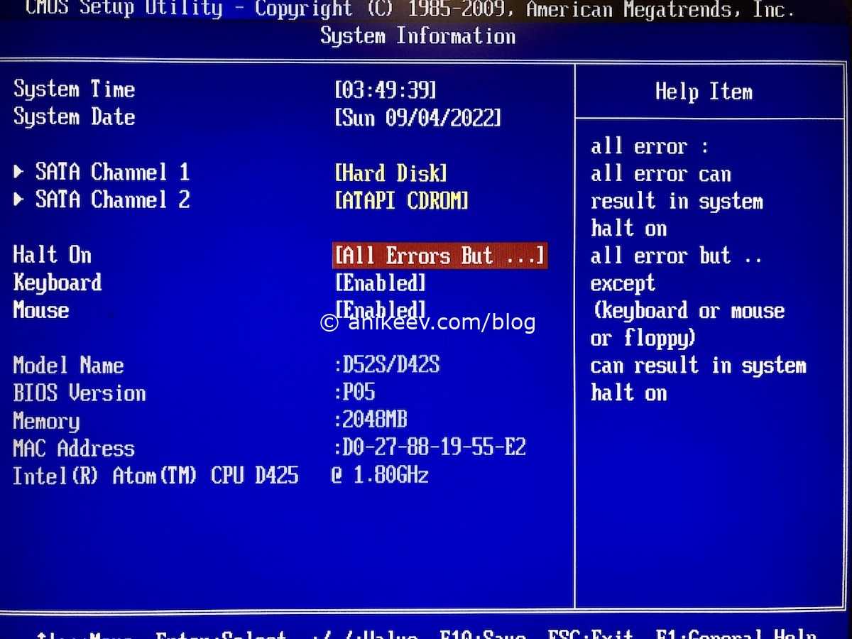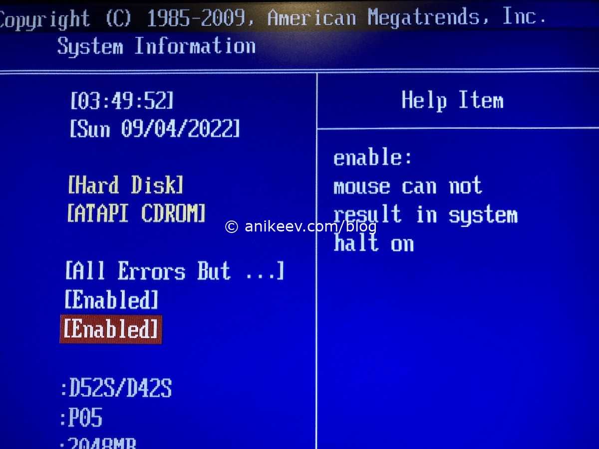 Halt on errors = NONE — опция Halt on не позволяет плате грузить систему при возникновении некоторых ошибок, типа неподключенной клавиатуры, отсутствующего монитора и прочего. Эта опция обычно включена в режим All, что для нормального компьютера вообще не проблема. Но нам бы надо заставить включаться компьютер только с подключённым кабелем питания и сетью, без всего остального. То есть надо переключить опцию в режим None. Не во всех платах есть возможность отключить проверку на ошибки полностью, так что будьте внимательны.