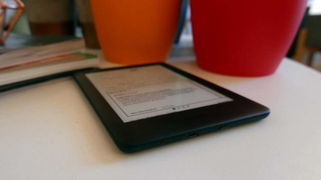 The Kindle is also pretty sparse in terms of physical inputs and ports. There’s a power button and a charging port on the bottom, and that’s about it. There are no physical buttons, which is a shame, particularly as the middle-of-the-road doesn’t offer them, either. If you want to turn pages physically, you’ll need to invest in the $250 Kindle Oasis, which seems like a lot of money for a feature that used to come standard with almost every e-reader.