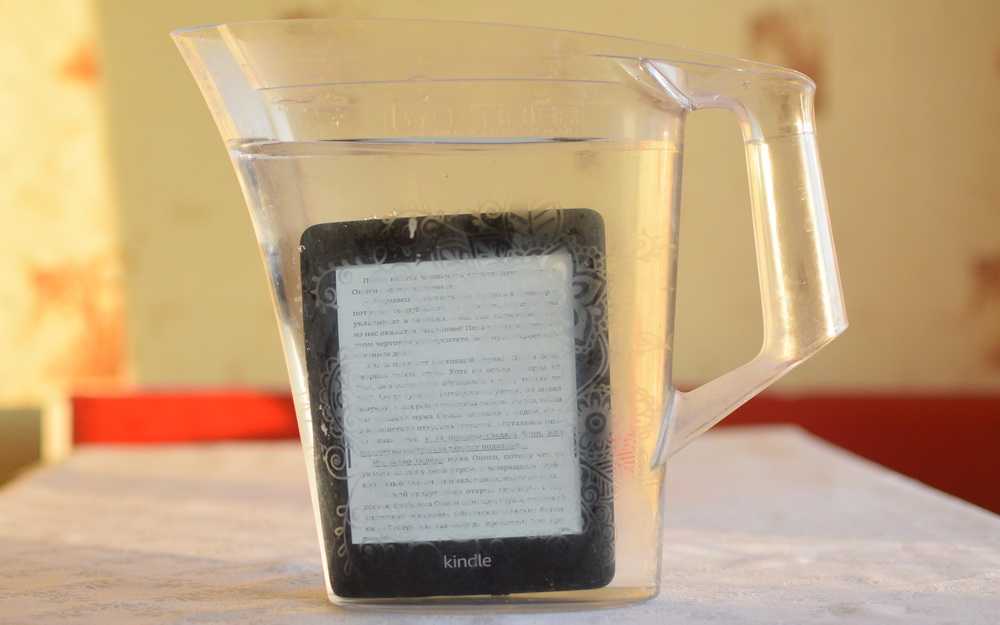 Другими словами, можно без последствий уронить ридер в ванную, разлить на него чай, не прятать во время сильного дождя.