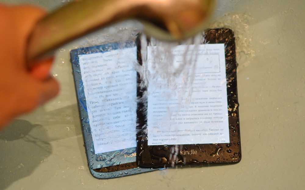 Получается паритет, обе обозреваемые модели одинаково хорошо переносят контакт с водой, их можно без опаски брать в отпуск на море, читать в ванной. В общем, использовать в ситуациях, где высок риск залить электронную книгу жидкостью.