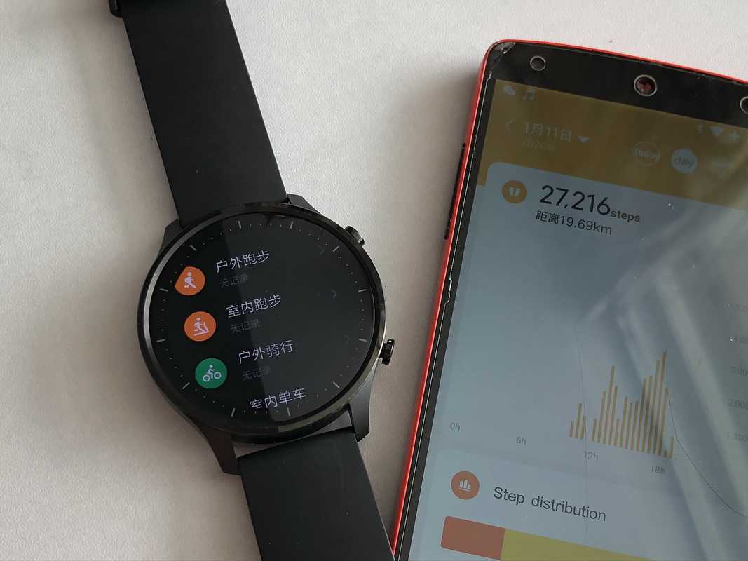 Процедура синхронизации с телефоном осуществляется через программу Mi Home, после чего можно задействовать различные возможности, к которым относится мониторинг активности. Стрелка шагомера находится в нижней части циферблата, при этом мониторинг вполне корректный, но не безупречный. Часы позволяют отображать не более 20 тысяч шагов. Посредством мобильного приложения можно просмотреть сведения относительно ходьбы в разные временные промежутки. Дополнительно представлено пройденное расстояние, объём сожжённых калорий и продолжительность ходьбы.