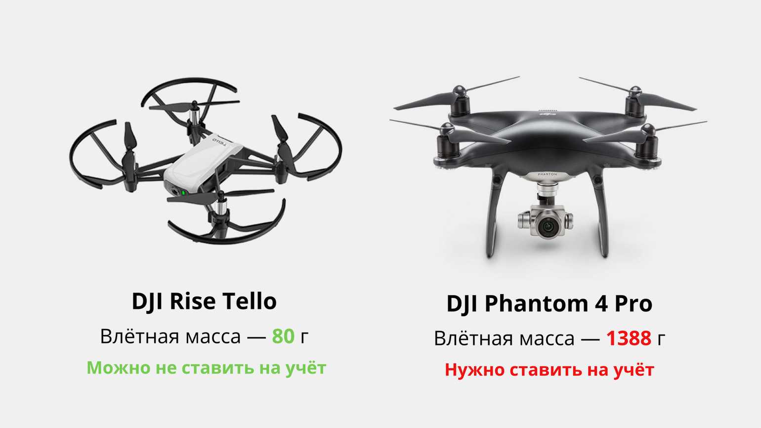 Что изменилось. 27 сентября 2019 года правительство выпустило постановление, согласно которому нужно регистрировать БПЛА взлётной массой от 250 граммов — то есть, практически все лёгкие гражданские беспилотники. А в прошлом году этот параметр решили снизить до 150 граммов.