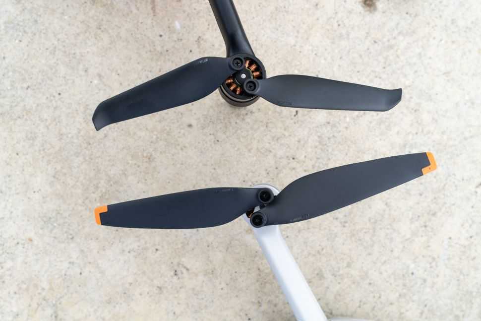 Конструкция и размеры пропеллеров: Autel Evo Nano+ (вверху) и DJI Mini 3 Pro (внизу)