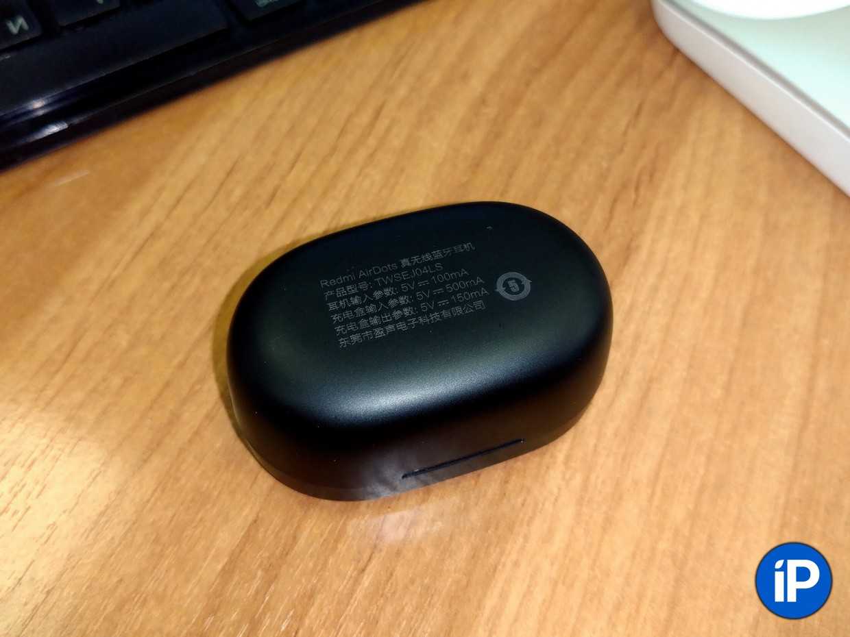 Надпись на коробке должна быть такой: Mi True Wireless Earbuds Basic или AirDots. При этом на кейсе указывается маркировка Redmi или просто Mi. Внешнее устройство (кейс) комфортно носить в кармане. По габаритам чехол крупнее Apple AirPods, но компактнее Power Beats Pro и UNITWS.