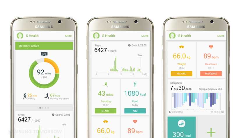 S-Health — спорт-приложение для отслеживания физической активности. В нем можно «подстроить» под себя ежедневные цели, контролировать собственный прогресс. А если создать аккаунт — «соревноваться» с другими владельцами смарт-часов, например, в числе пройденных шагов за день. Датчики, отслеживающие пульс, число шагов и так далее настраиваются и на автоматическое включение, и на работу по запросу.