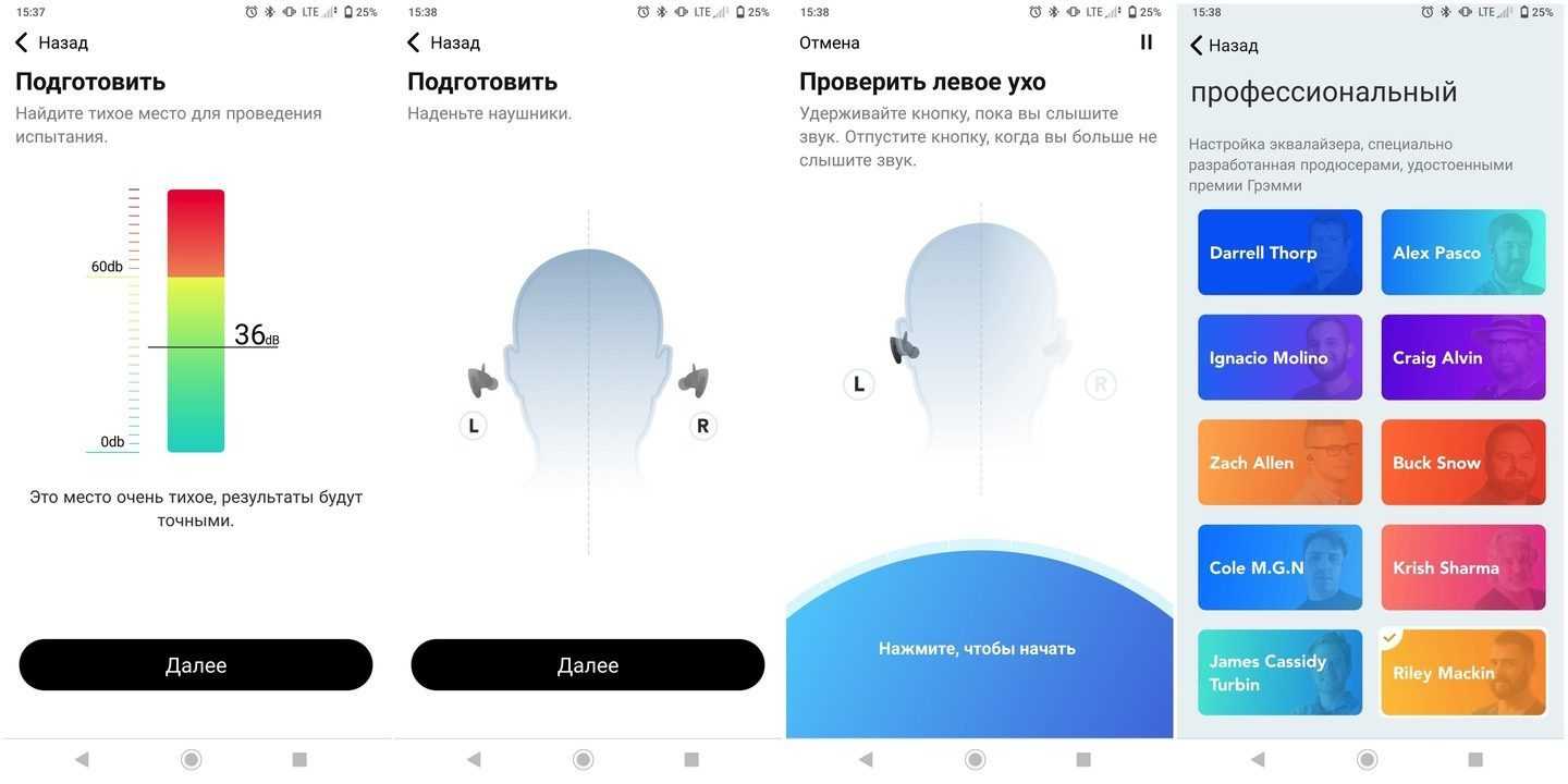 Одна из самых интересных особенностей Liberty 2 Pro — это возможность адаптировать звук к вашему слуху с помощью технологии Hear ID. Работает это так: включить наушники, уйти в тихое место и запустить тест. Звуковые сигналы, соответствующие различным диапазонам, будут поочередно передаваться в левый и правый наушники. Если пользователь слышит звуки, он нажимает на экран, если нет, он отпускает кнопку. Часто бывает, что человек не распознает определенные частоты: это зависит от возраста, особенностей слуха и организма в целом. На основе результатов теста Hear ID создает персонализированный профиль в зависимости от ваших слуховых способностей.