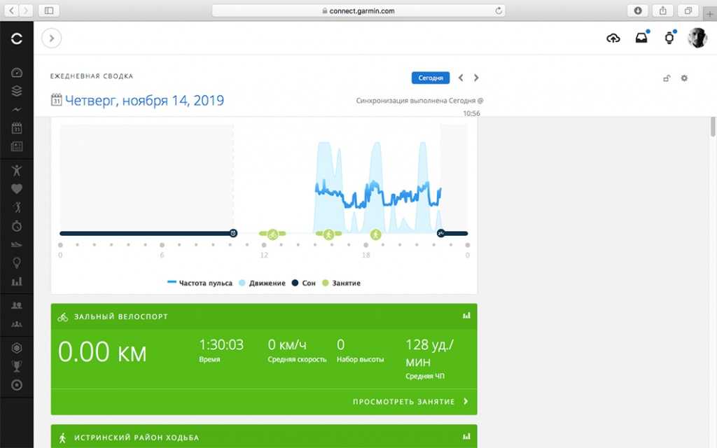 В итоге можно просмотреть как общие данные, так и отдельные, такие как количество шагов, гребков или преодолённое расстояние.