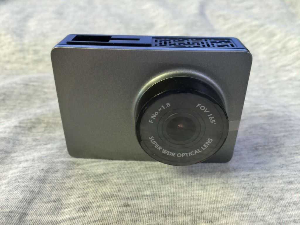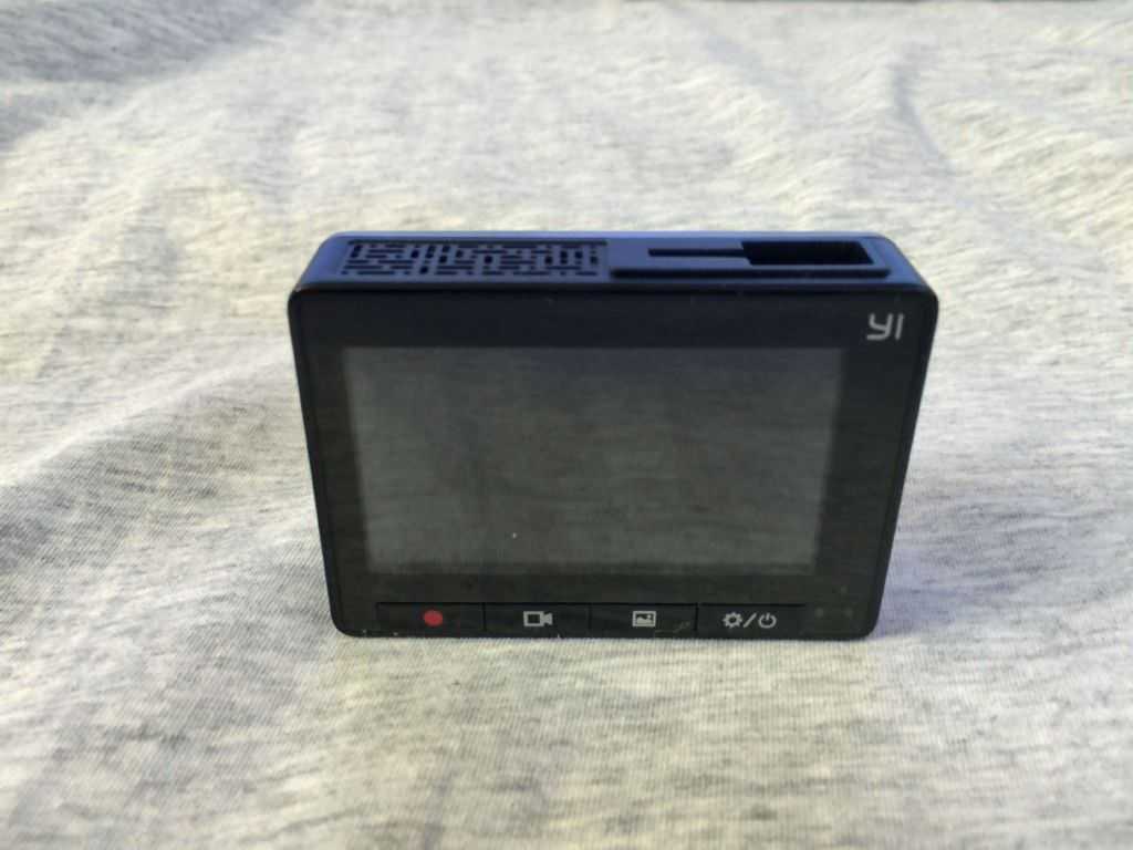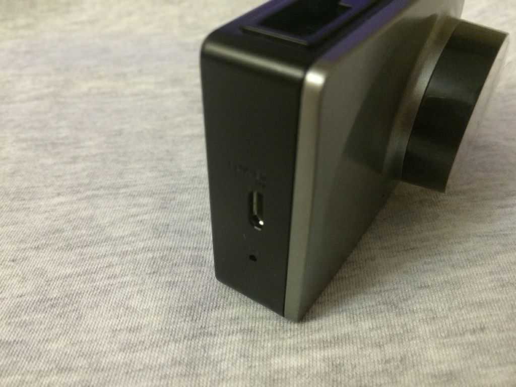 Спереди регистратор Xiaomi Yi 1080P Car WiFi DVR ничем не выделяется. Небольшой прямоугольный корпус с закругленными краями, объектив и отверстие для микрофона. Сзади находится дисплей и 4 кнопки управления. Кроме темно-серого цвета присутствует еще бело-золотистый.На верхнем и нижнем торцах аппарата нет ничего необычного: отверстия для вентиляции и крепления. Как показало последующее тестирование, регистратор нагревается, но не критично. На левом торце присутствует слот для карты microSD. В разъеме установлена фиксирующая защелка, что исключает выпадение флешки во время езды. На правом торце присутствует разъем зарядки, куда и подключается кабель, а также кнопка Reset.