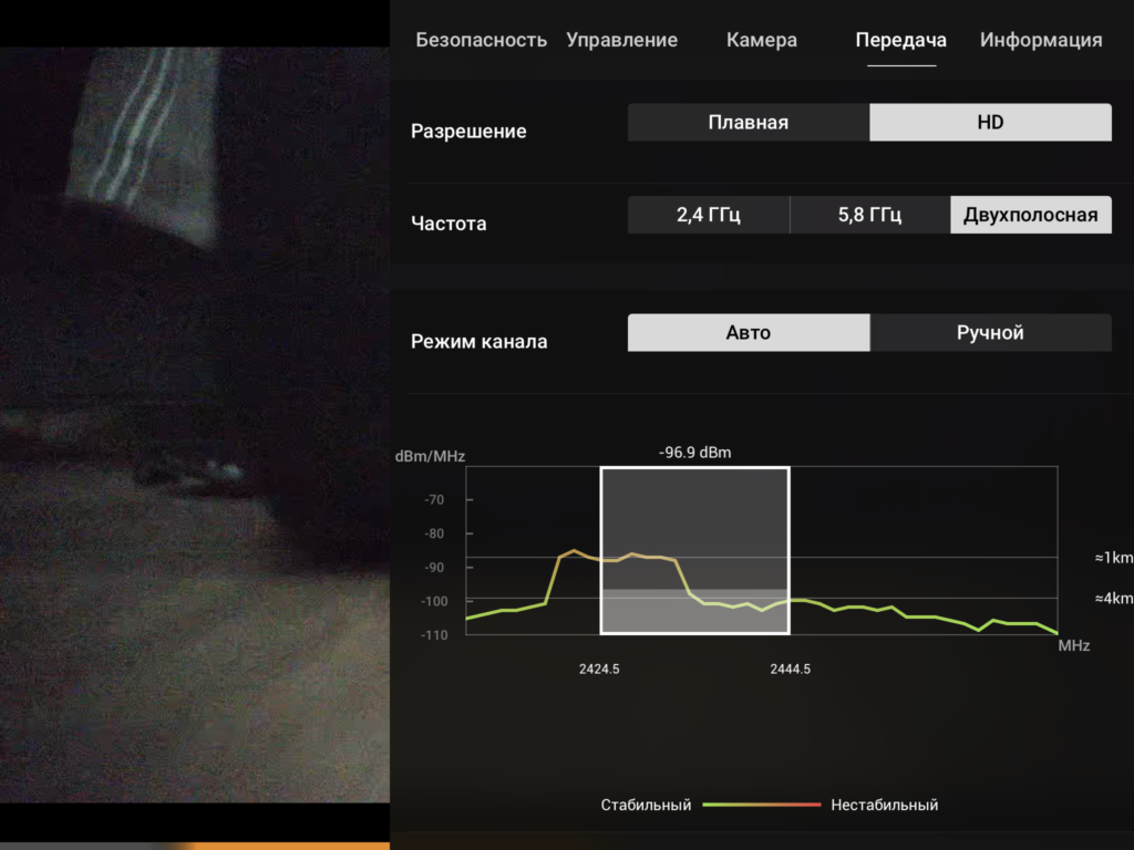 Твик помимо перевода мощности в режим FCC активирует частоту 5.8 ГГц. С ним коптер летает на максимальной мощности и динамически выбирает наиболее подходящую частоту для стабильного сигнала. При необходимости, есть возможность вручную выбрать этот параметр в настройках приложения DJI Fly или Go.