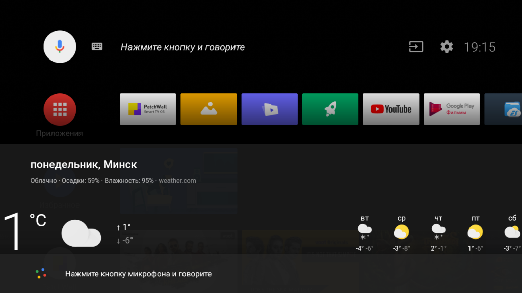 Сразу хочется отметить, что из коробки ассистент понимает английскую и русскую речь (выбранный язык). Для его активации имеется два способа: нажать на выделенную кнопку на пульте или нажать на значок ассистента на рабочем столе Android TV.