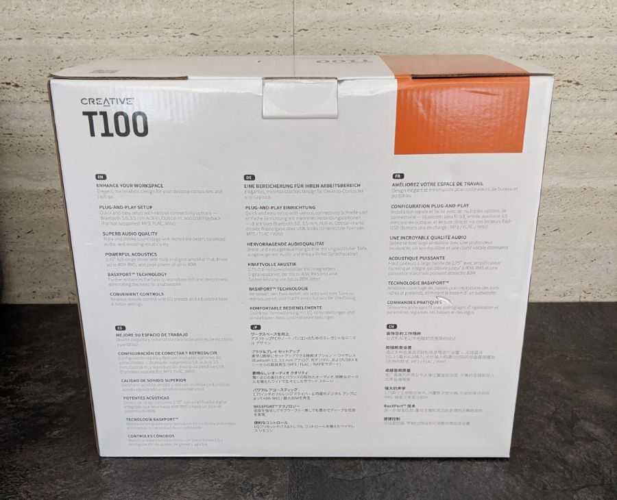 This section of our Creative T100 review talks about the packaging and contents of the Creative T100. The T100 came in a tough and durable package that guarantees 100% protection from damage.