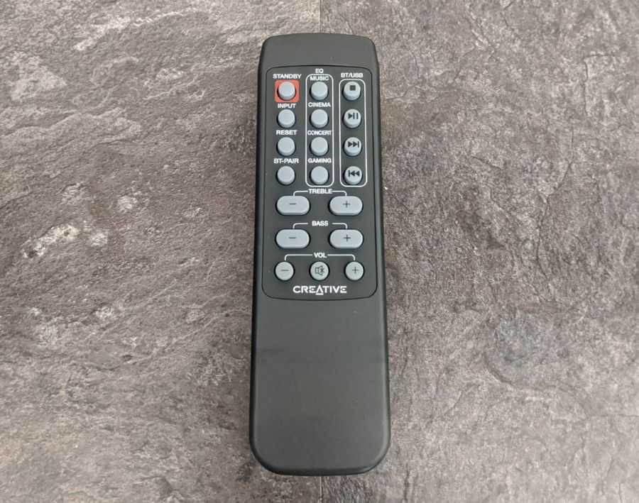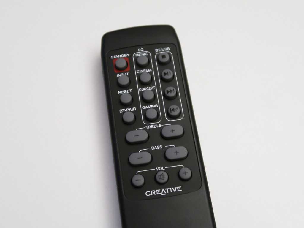 Luckily, you can adjust the treble and bass levels with the included remote. You can also select between music, cinema, concert, and gaming presets. Between the four presets and treble/bass controls, you should be able to adjust the sound levels to your preference. When hooked up to a computer, gaming, movies, and music all sounded fantastic. When adjusted, I found the audio to be pretty balanced in each case and more than suitable for whichever type of media I was consuming. The same went for music streamed over Bluetooth.Audio can be adjusted using the included remote control.