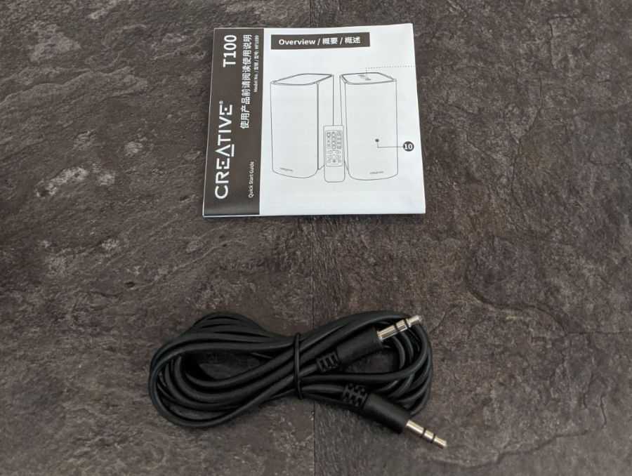 What’s included with the Creative T100 Premium Hi-Fi 2.0 Desktop Speakers.
