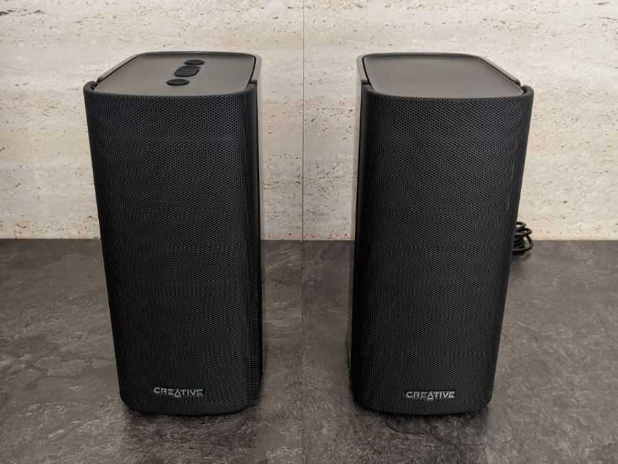 While I’m not a huge fan of the glossy finish, the Creative T100 speakers do look pretty slick sitting on either side of your monitor on a desk.