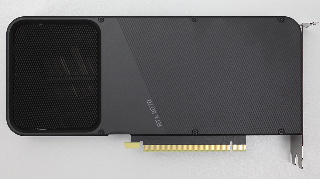 Карта использует тот же дизайн конструкции кулера «двухосевой проточный», что и карты RTX 3080 и RTX 3090 Founders Edition, но с 2 вентиляторами на одной стороне.